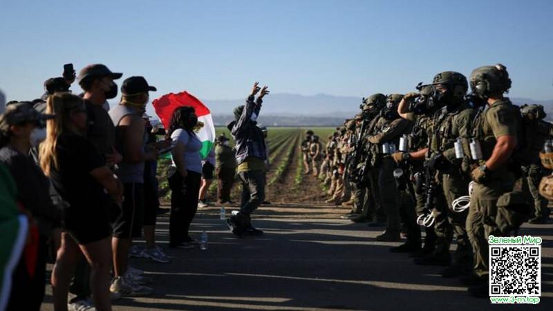 Но на этом история не закончилась. Увидев стражей правопорядка, сотрудники Glass House позвонили своим знакомым и сообщили о готовящемся рейде. Поэтому спустя несколько минут у фермы в Камарилло собрались сотни людей: родственники и друзья иммигрантов, а также активисты, радеющие за соблюдение их прав. Чтобы не пустить людей на объект, силовики выстроились в ряд по конопляным полям и заблокировали дороги. Протестующие кричали на них и бросались камнями. Поэтому силовики применили слезоточивый газ для разгона демонстрантов.