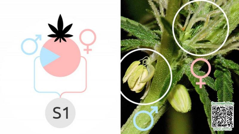 S1 версии семян каннабиса. Такие семена каннабиса получаются при скрещивании штамма с самим собой после искусственного самоопыления. То есть это не просто бридинг растений одного и того же сорта, а буквально скрещивание куста с самим собой. Это достигается благодаря стрессу, которому подвергается женский куст конопли, в результате чего он становится гермафродитом, проявляя как мужскую, так и женскую половую принадлежность. После такой метаморфозы куст может опылить сам себя и производить семена. Такой посевной материал в дальнейшем позволяет добиться очень однородного потомства с предсказуемыми характеристиками фенотипа и урожайности соцветий.