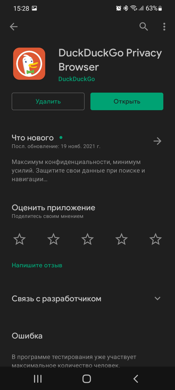 Далее мы видим что после обновления DuckDuckGo встал на первое место среди приложений.