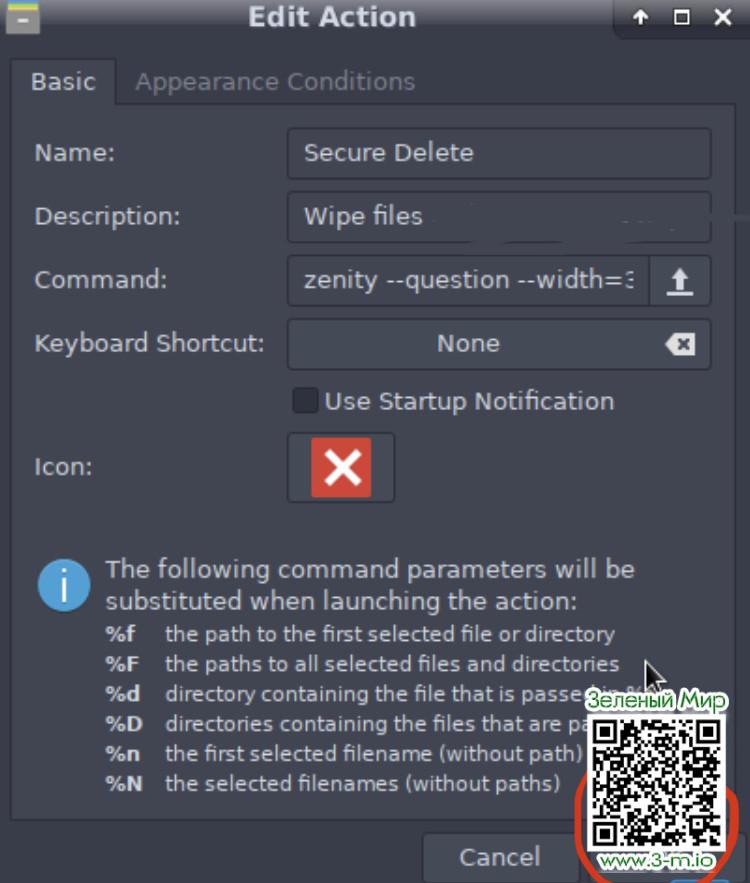 Реализовываем функцию полного уничтожения данных в файловом менеджере Thunar.