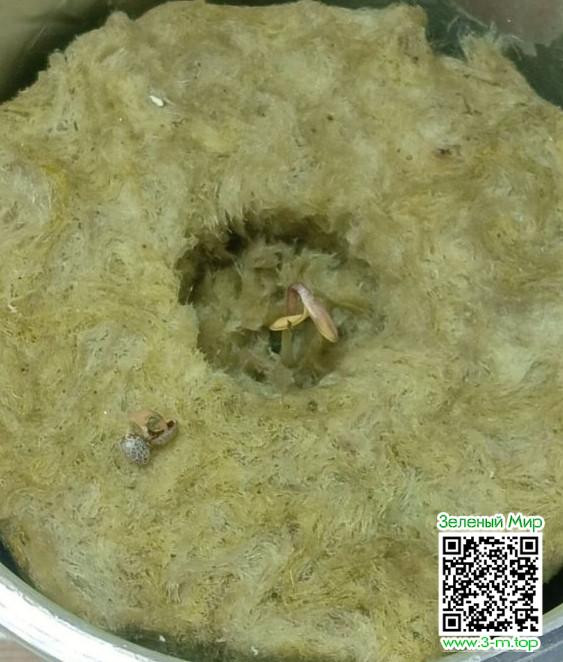 А начну я именно с рождения (пробуждения жизненных функций) - с первого корешка после суток проращивания в ватных дисках. Естественно перед проращиванием семечку необходимо замочить в воде комн темп с двумя каплями перекиси 3% на стопку (30мл) воды на 12-24 часа при температуре в 25-27 градусов по цельсию. Вода пока из магазина (крануха зло). Оптимальная вода, как показали приборы наблюдения и контроля качества - оригинальная питьевая вода из всем известного ДИКСИ - "первым делом" люберецких водоочистительных сооружений, ой, в смысле, артезианской скважины))) (не реклама ниразу) Правда я ахуел, откуда эта вода берется, поработав там полтора месяца. Но не суть... Для питья лучше приобретите осмос. А потребуется он вам не только для питья, но и для растишечки своей любимой! И да, если у вас есть жена и прочая нечисть в доме, то ревность обеспечена!!! К слову о качестве воды вышеупомянутой... Кто страдает проблемами с ЖКТ, то эта водичка вдобавок щелочит. Вам даже не потребуется сода, чтоб сбить изжогу, а вот семечке придётся добавить волшебного окислителя PH - до значения 5.5. Перекись водорода обеспечит дополнительным кислородом, что в свою очередь подтолкнёт прорыв скорлупы, разрыхлит её. В некоторых случаях даже проращивание не требуется, так как в такой насыщенной кислородом воде корешок уже проклёвывается. Если за сутки семечка не утонула в воде (это бывает с применением перекиси), ткните в неё пальцем. Если после пенделя она упала на дно, доставайте и в ватные диски, если нет, выкидывайте и начинайте заново с новой семечкой. Первый шаг получился? Отлично! Писданули у супруги/девушки/мамки/парня и тд пару ватных дисков, один диск поместили в пластиковый пищевой маленький контейнер, смочили слегка его водой, положили семечку, накрыли вторым диском, снова смочили, пульвик в плмощь. И по традиции, глубоко вдохнули и ВЫдохнули из своих прокуренных лёгких углекислый газ с канцерогенами и всей остальной ядовитой отравой, как будто вас проверяет на дороге гражданин начальник на алкоголь, в контейнер! резко закрываем крышечкой, заворачиваем в полотенце и на сутки в теплое тёмное место, так же 25-27 по целочке. У меня ушло сутки на одно и сутки на второе. И главное - никакого света!