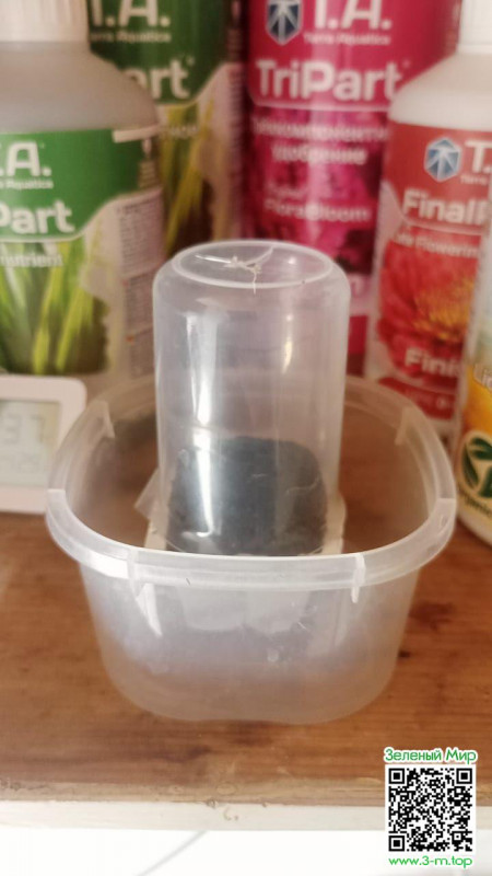 Штош. Ладно. Достаём из заначки проверенный безотказный, как Зинка из сексшопа, кубик-спанч Root Riot) В нем уже содержится стим для корней. По этому кубик нужно будет слегка смочит обычной водой с ppm не больше 50-60. Запускаем снова процесс проращивания новой семки. После всех манипуляций проращивания закидываем семку в этот кубик. Обязательно корешком вниз. Неглубоко, буквально на пару мм семечка должна углубиться. Закрываем сверху кусочком этого же кубика и убираем в тёплое тёмное место.