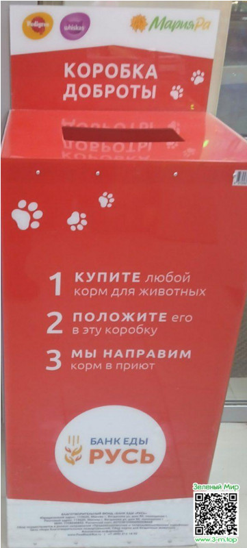 приобрести один корм в банке пачке , хоть какой и скинуть в данный контейнер(предоставить нам фото на фоне данного контейнера ) предварительно написав на упакове ( ЗМ Ваш nickname и #номер банки какую вы кидаете, пример https://ibb.org.ru/1/qhxdrr только на фоте контейнера для сбора )