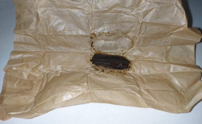 упаковка ЗИП с прикольной наклейкой, гашиш завернут в пергамент.