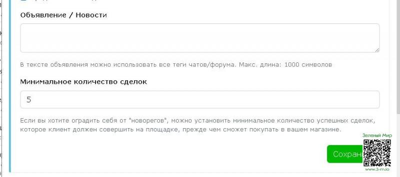 Новая настройка позволяет установить мин. количество сделок на площадке, после которого клиенты смогут покупать у вас.