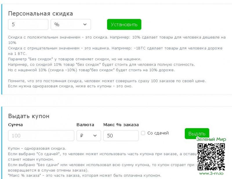 Добавлены пояснения для магазинов во вкладке "Скидки" профилей пользователей, во избежание выдачи не тех скидок которые хотелось.