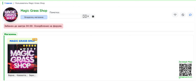 Magic Grass Shop, и у тебя так и не хватило мужества, порядочности на общее признать, что тот инцидент, форс мажор который вышел, был изчерпан и пожаты руки перемирия