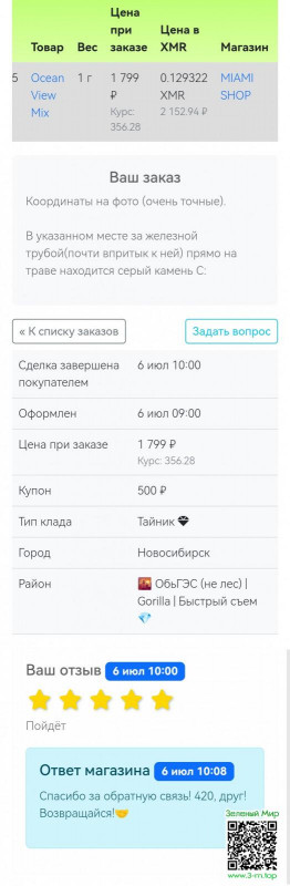 В майами была 1 покупка, магаз в отзывах пишет "спасибо друг" потом оставляет мне заметку. При этом сам выдаёт купон, на эту покупку, это че за хуйня?