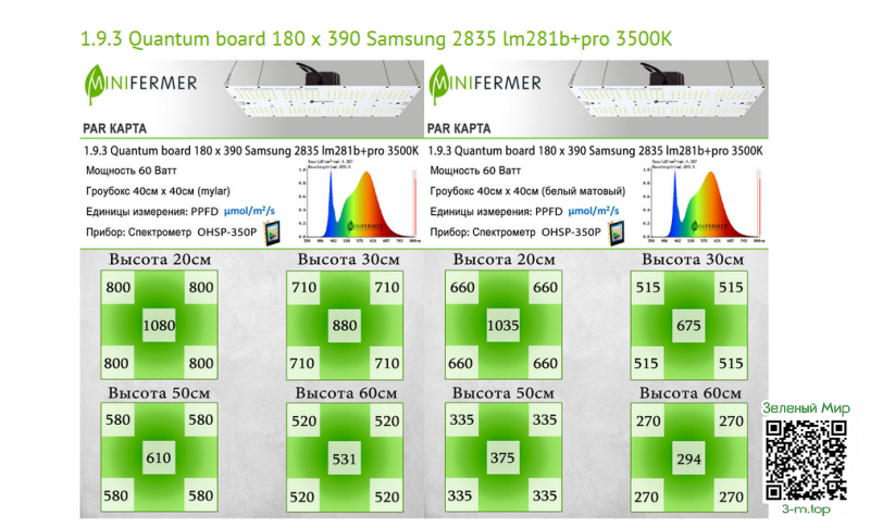 Например, для гроубокса 40/40 см вначале будет вполне достаточно приобрести Quantum board мощностью 60 Вт. Вариант с регулировкой яркости обойдется примерно в 4000-5000р.
