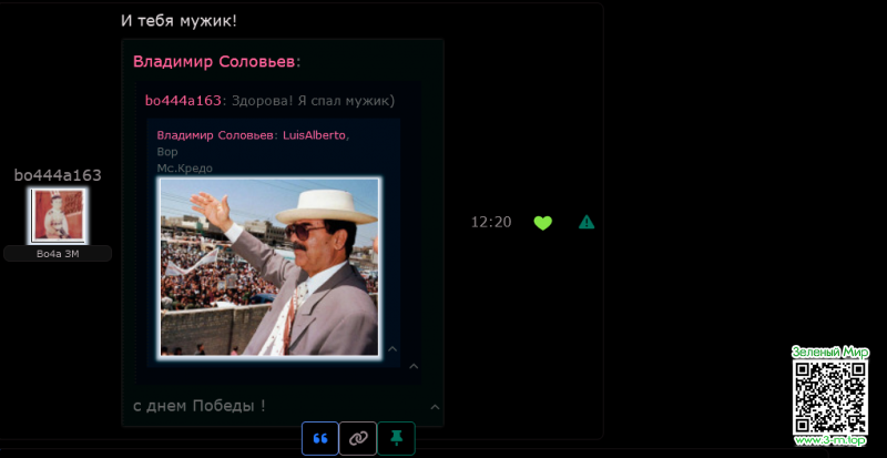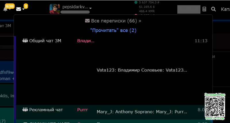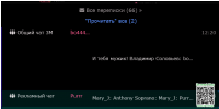 Во всплывающем окне с переписками произошла какая-то фигня со строкой "Общий чат", наблюдал это на нескольких вкладках одновременно, с разными сообщениями у меня такое подозрение что это как-то связано с тем в это время в чате народ кидал картинки друг другу: на скриншоте в 11:13 "Vata123" отвечает "Владимир Соловьев", но когда я только заметил баг, там было сообщение от "Владимир Соловьев" в 11:03. Все эти сообщения, и в 11:03 и в 11:13 содержали картинки.