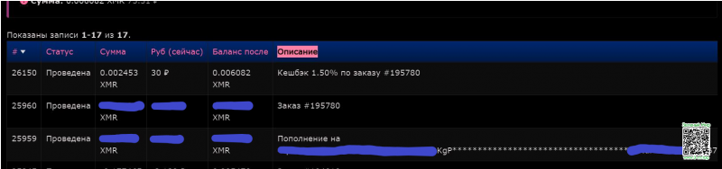 Следующий баг: в разделе "Финансы: XMR" внизу страницы таблица с историей операцией выходит за рамки ширины страницы (картинка 1), из-за чего столбцы "сущность", "создана" и "обновлена" не видно без дополнительного прокручивания направо (картинка 2). Для сравнения на картинке 3 - то как выглядят "Финансы: BTC", чётко.
