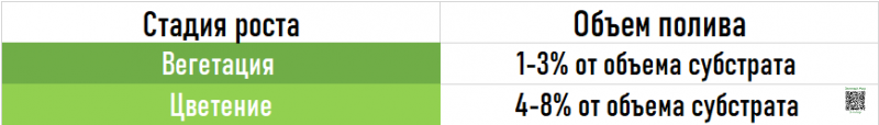 Объем полива для вегетативного роста = 10л х 3% = 10 000мл х 0,03 = 300мл.