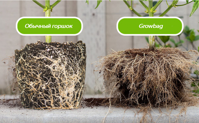 По тому же принципу работают «воздушные горшки» — аэропоты. Они более удобны для проведения тренировок, когда нужно подвязывать ветки к краю горшка. Гроубэги же не держат форму