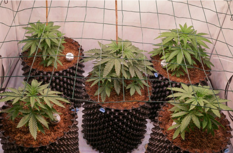 Стоит отдать предпочтение тканевым горшкам (Grow bag). Пластиковые варианты не столь желательны, в виду того, что в них корневая система получает меньше кислорода, а также имеет жесткое препятствие на пути своего развития. В таком горшке корни будут закручиваться в клубок, достигая его стенок. Таким образом, старые отростки становятся всё более длинными и запутанными, а новые корни не развиваются. В результате чего замедляется общий рост растения.