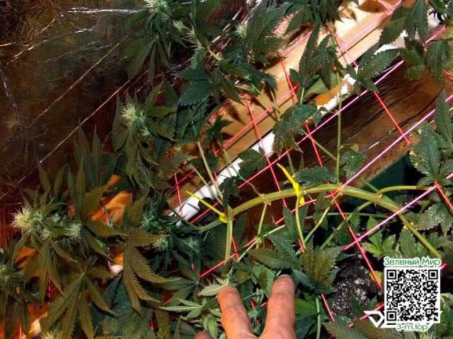 Помните, что мы должны тренировать растение на развитие в горизонтальной плоскости, пока не дойдём до стадии цветения. Это важно!